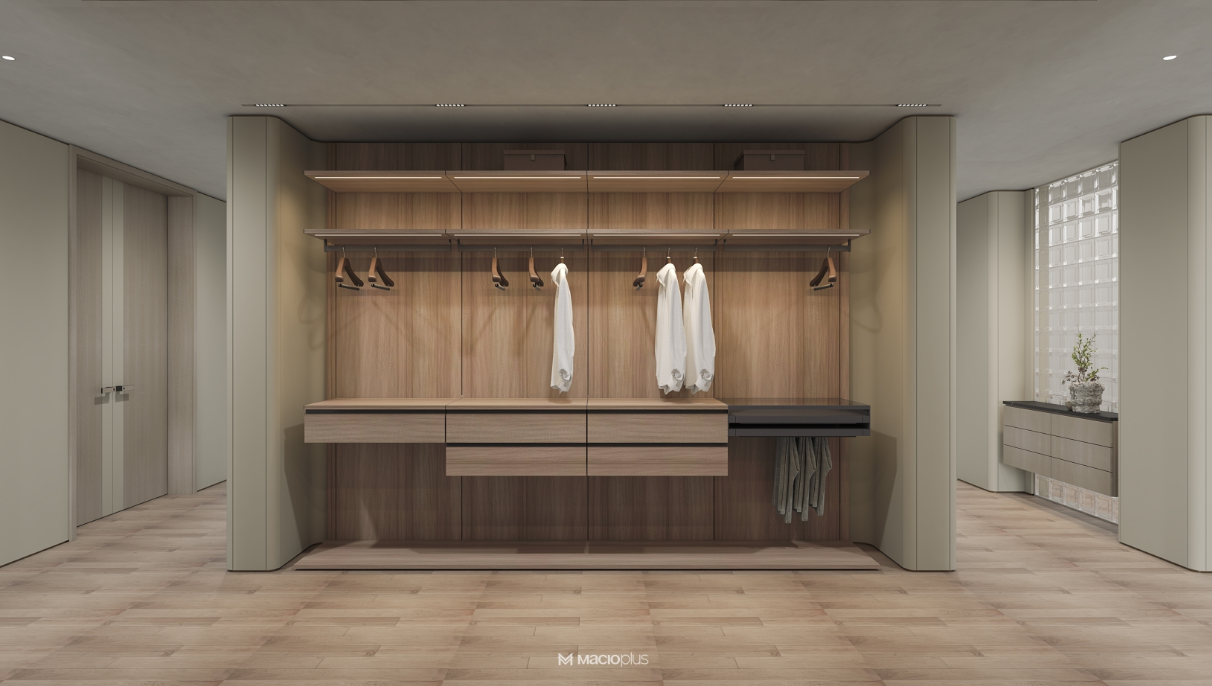 由三层或以上实木单板纵横交错热压而成,玛格选用杨木、桉木等优质基材,形成类似“三明治”的稳定结构。这种板材抗变形能力强,尤其适合南方潮湿地区或大尺寸柜门。玛格 25mm多层板,通过门墙柜一体化设计,实现空间美学与功能性的统一。