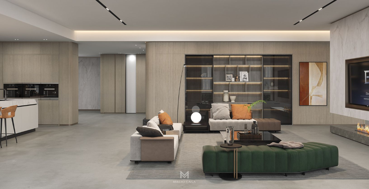 大户型设计则更注重功能分区。120㎡及以上的空间可以被划分为清晰的影视区、休闲区、睡眠区和更衣区,定制独立的储物系统如步入式衣帽间和酒柜,能显著提升空间质感。